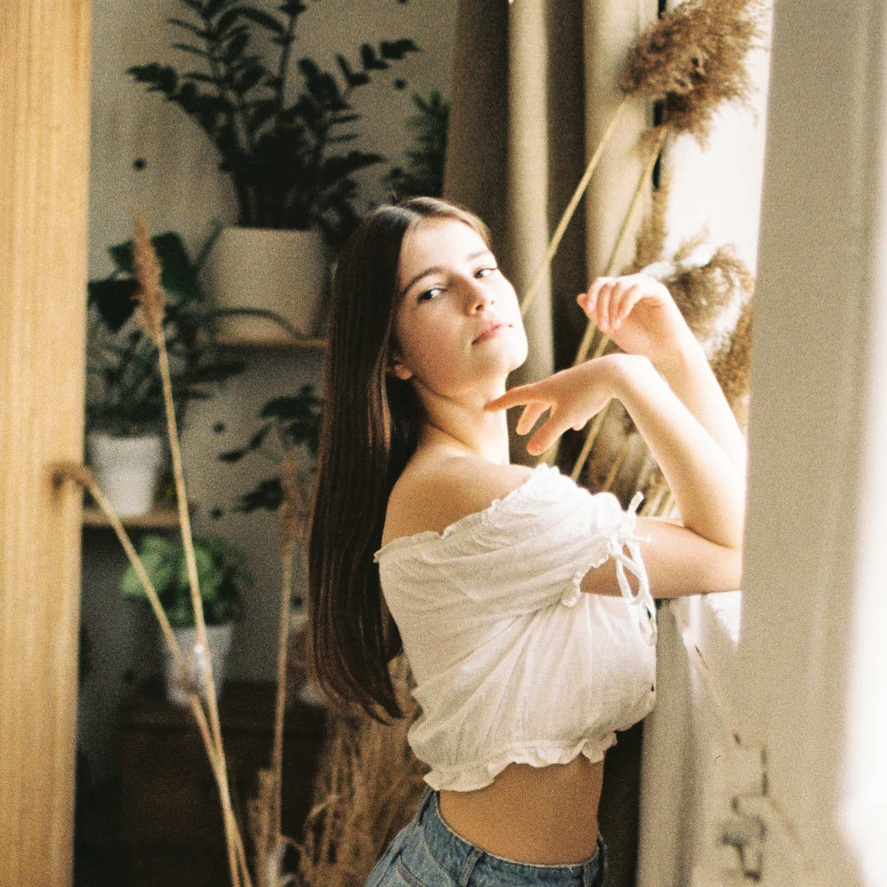Liza emanuje nie tylko naturalnym pięknem, ale również nieśmiałością, co doskonale uchwyciłem na analogowych kadrach. Zdjęcia te ukazują każdy detal, zachowując przy tym subtelną głębię i ciepło charakterystyczne dla techniki analogowej.