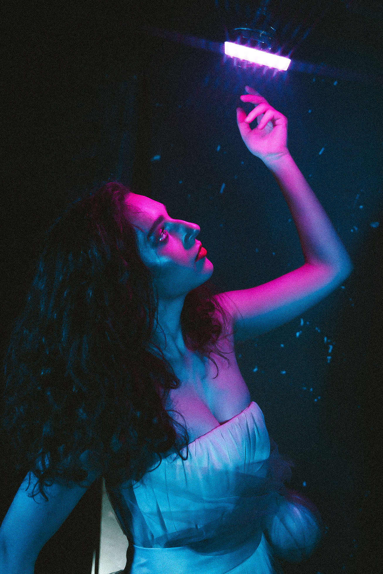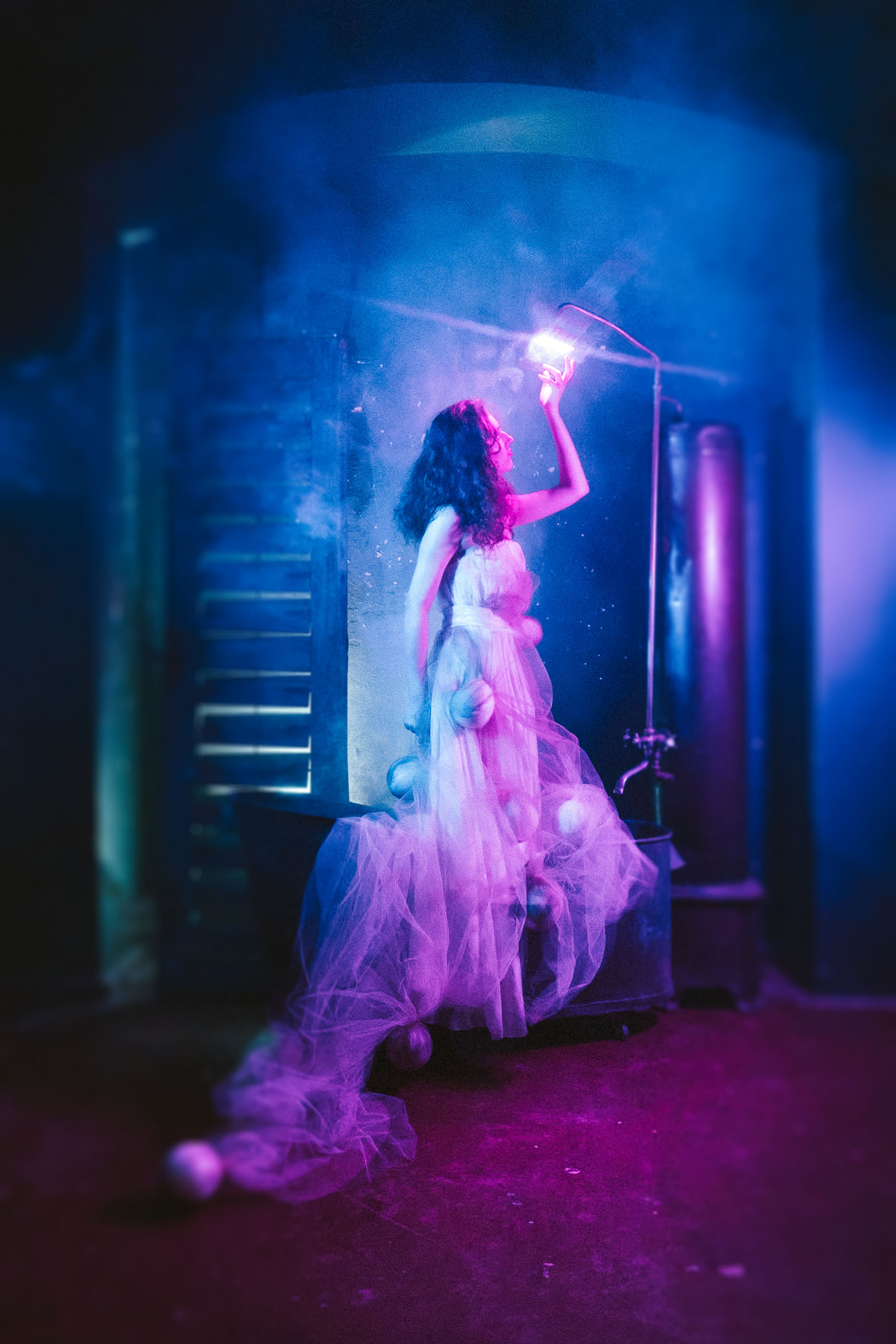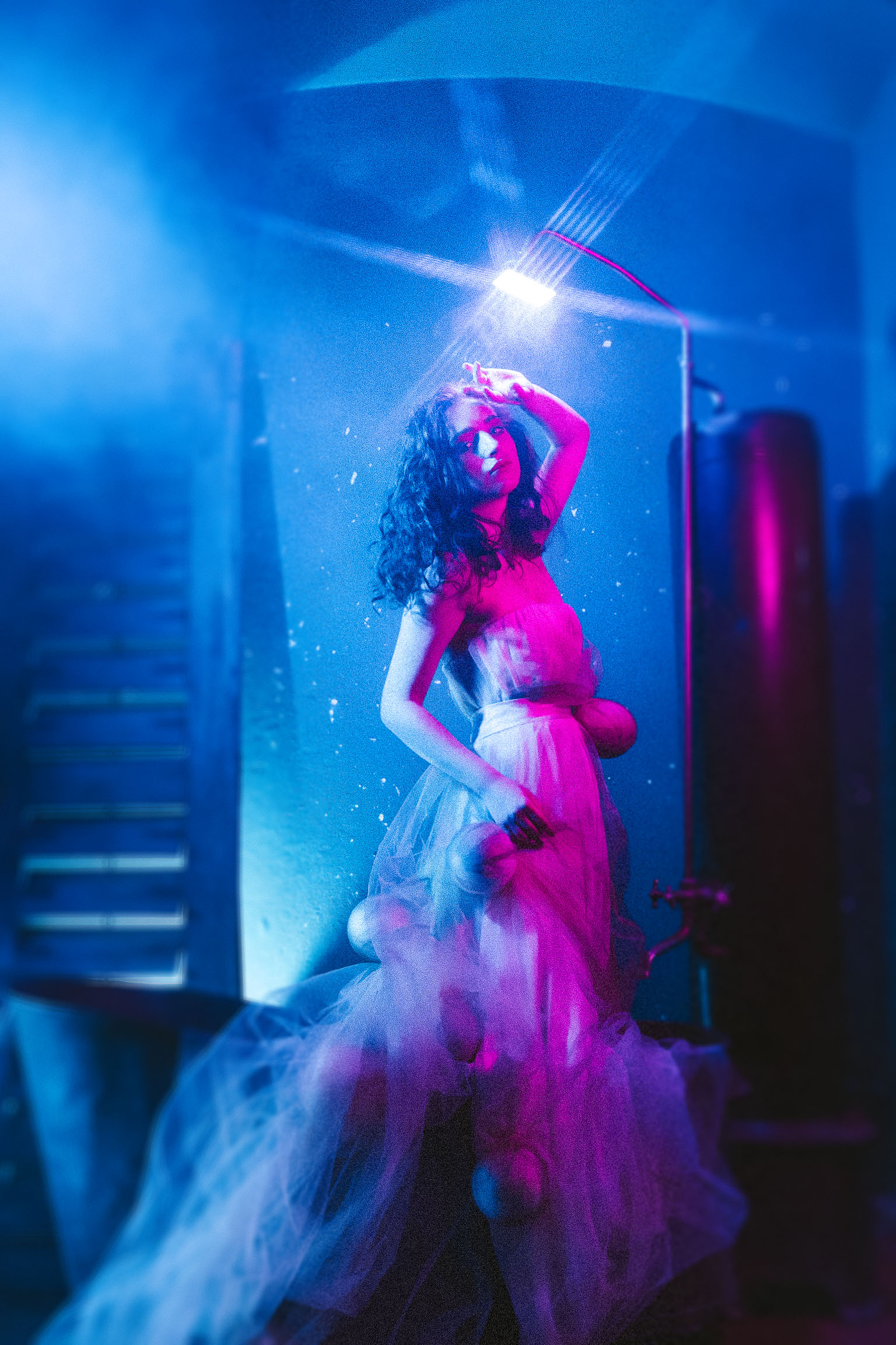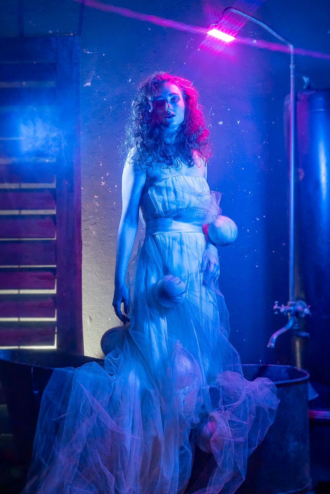 Zdjęcie powstało na plenerze ,który organizowała Monika Bojsan, plener odbył się w Pałacu Rząsiny w Gryfowie Śląskim. Było bardzo zimno, oj bardzo zimno. Zdjęcie zrobiłem przy użyciu trzech lamp oraz dymarki. Powstał surrealistyczny obraz modelki kąpiącej się w wannie kolorowym światłem.